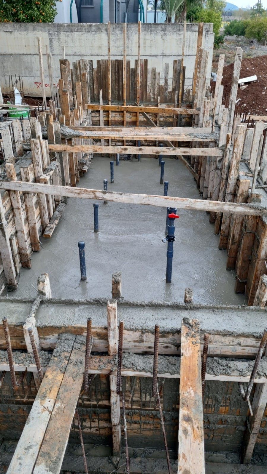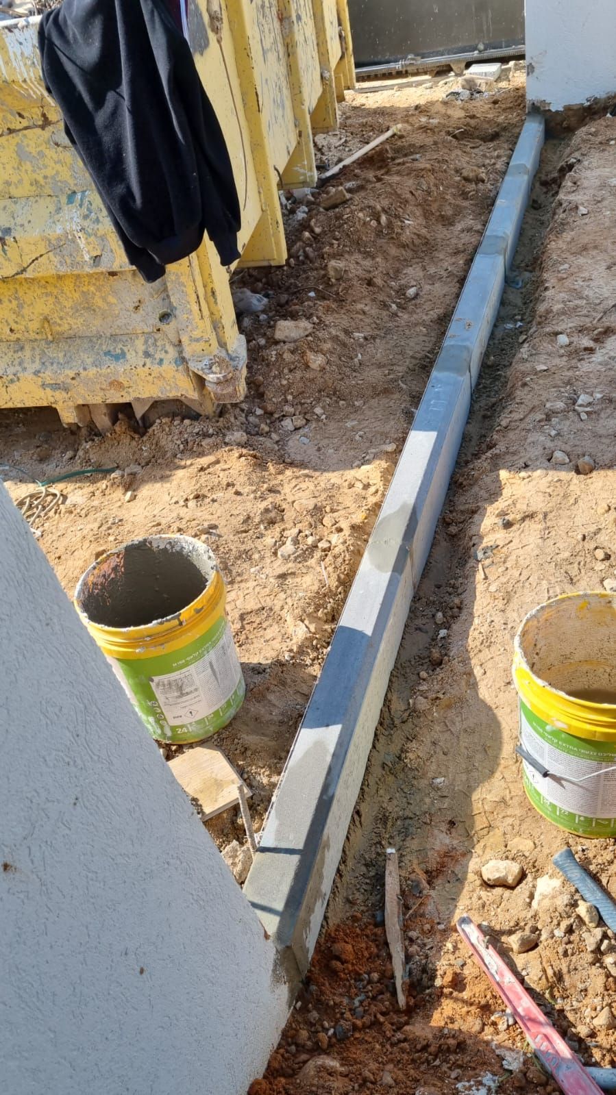 יציקת חגורה 20/20 ליצירת חיץ רטיבות בין בלוקי חוץ לקרקע.